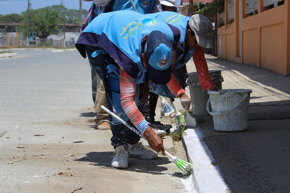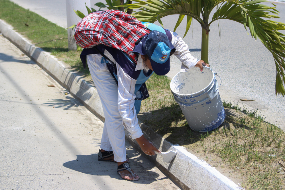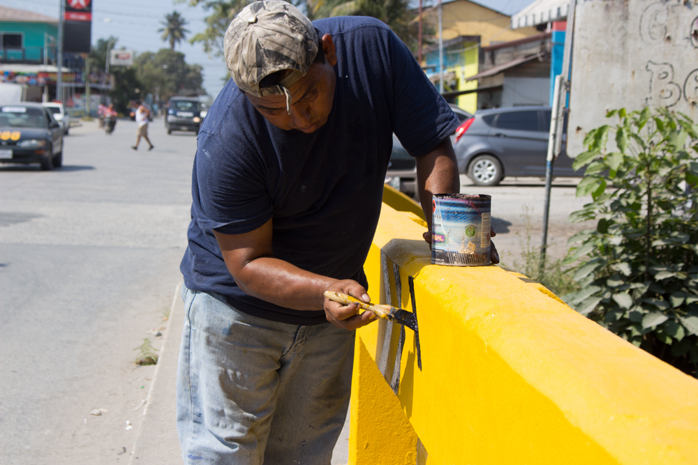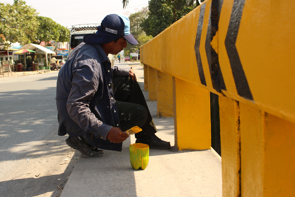 Cuadrillas de Trabajadores de Mantenimiento Municipal realizan tareas de encalado en la 12 avenida y pintan el puente de la 6ª. Avenida, porque es responsabilidad de la comuna mantener el ornato citadino.