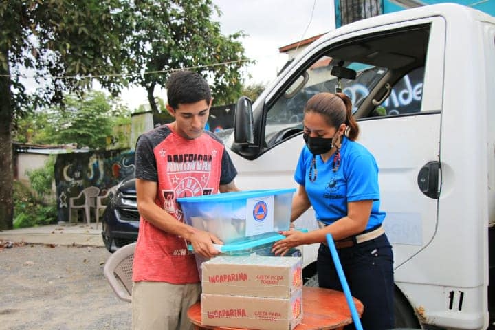 Este sábado personal de la Municipalidad continuó entregando la ayuda de CONRED, la cual consiste en una ración de alimentos, dos cajas de Incaparina, un kit de limpieza, utensilios de cocina y agua pura, a las familias afectadas en la 12 calle y 10 avenida orilla de Río Escondido, Colonia El Progreso en Puerto Barrios y colonia Vista Hermosa en Santo Tomás de Castilla.