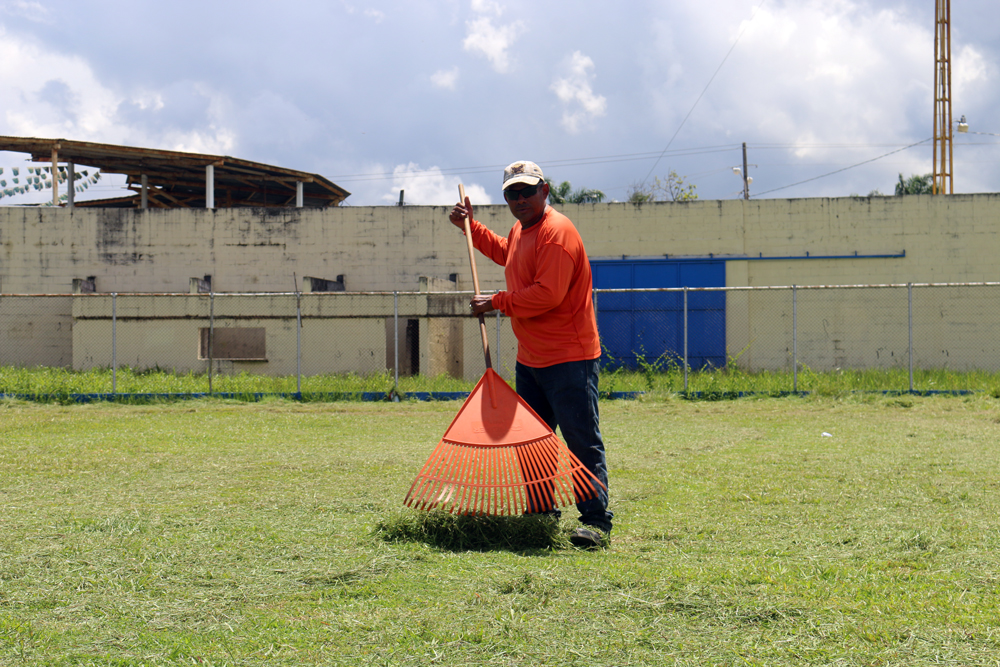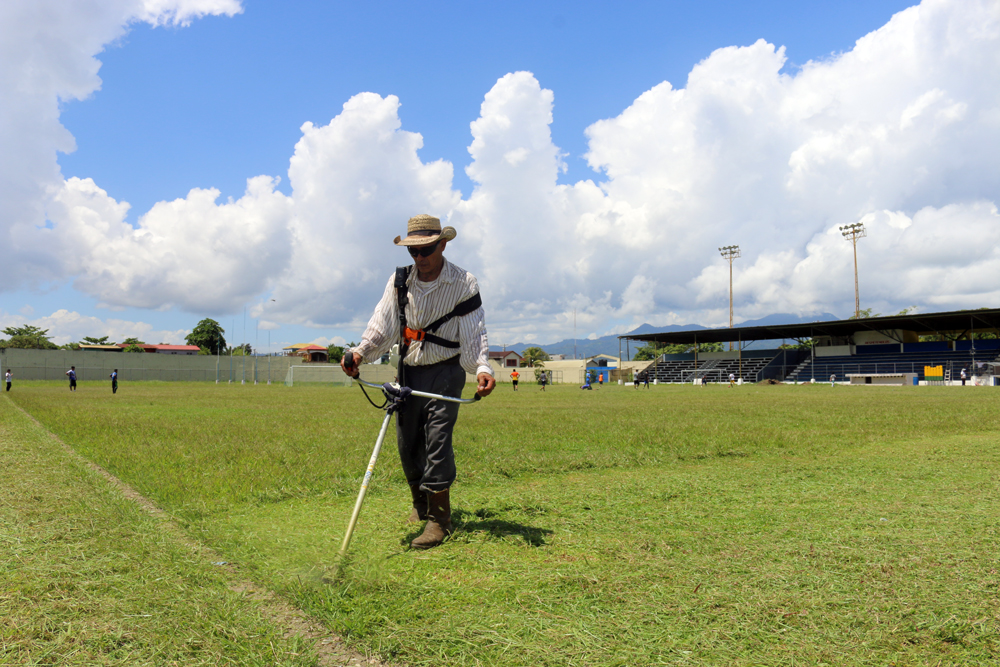 Brindan mantenimiento a la gramilla del Estadio Roy Fearon.