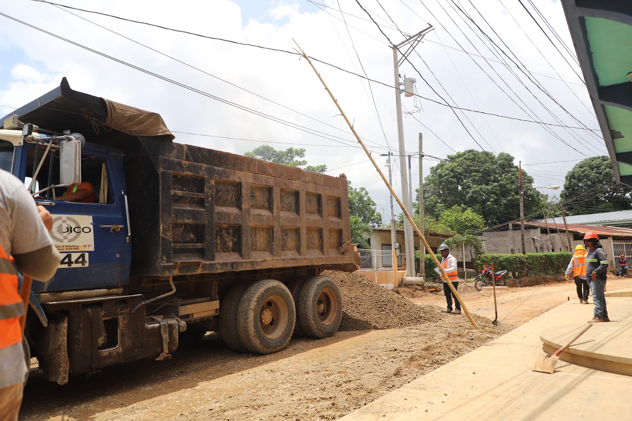 El Proyecto de Mejoramiento de la Calle Principal de Colina 2, Santo Tomás de Castilla continúa desarrollandose con la colocación del suelo cemento para la estabilización del terreno, un trabajo previo al asfalto que revestirá la obra para el beneficio de la población de Santo Tomás de Castilla.