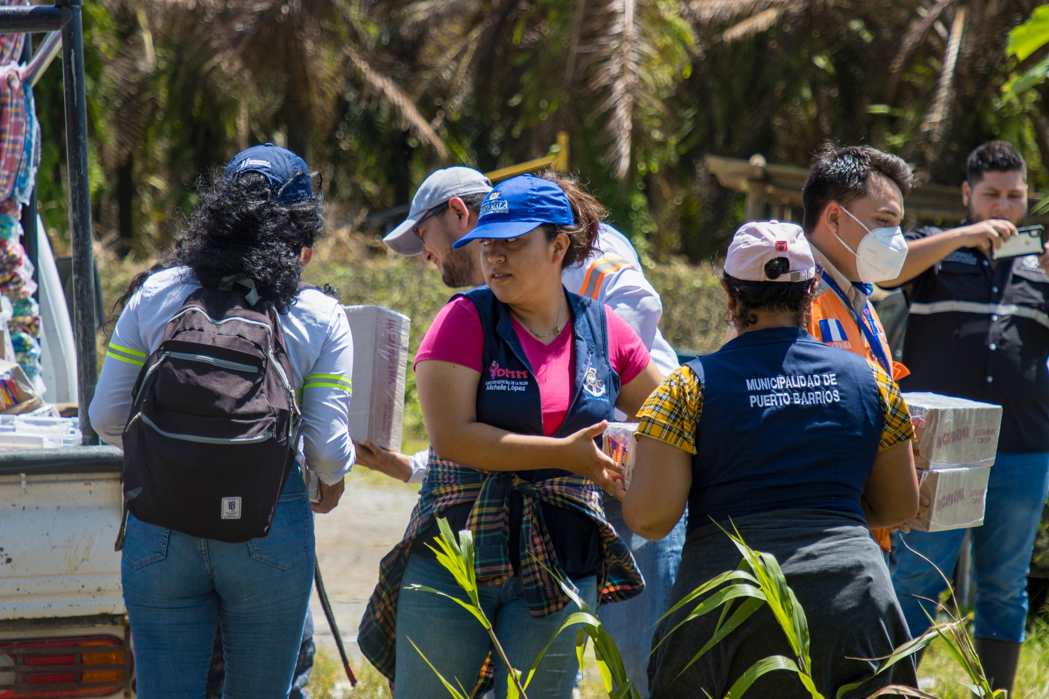 La Coordinadora Municipal para la Reducción de Desastres -COMRED- realizó la entrega de ayuda humanitaria en 39 viviendas que fueron afectadas por las inclemencias del tiempo, ubicadas en Caserío Mojanales Entre Rios, Piedras Negras Santo Tomás de Castilla y en la 18 calle y 15 avenida Puerto Barrios.