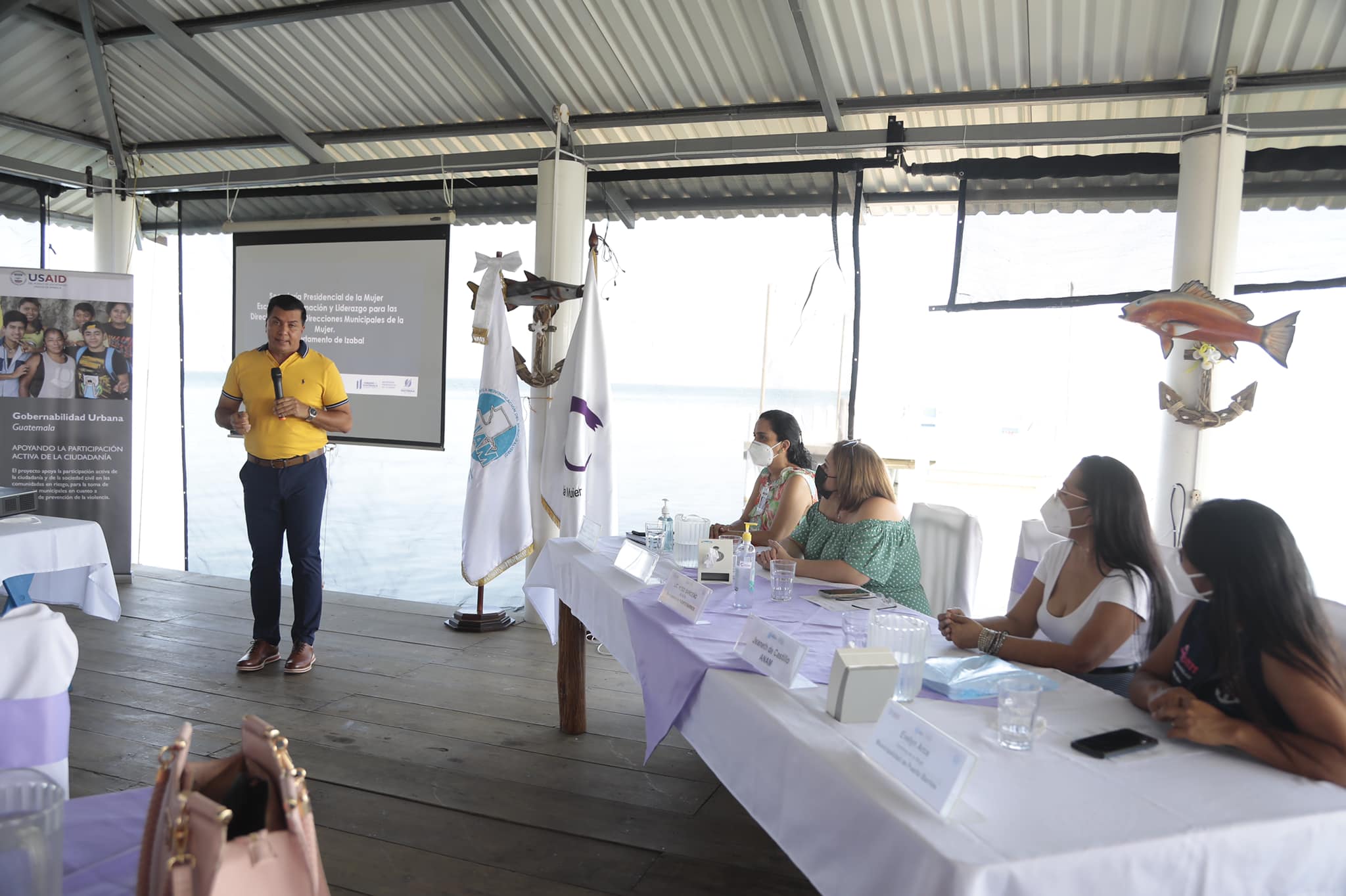 El Alcalde Lic. HUGO Sarceño de la Municipalidad de Puerto Barrios como anfitrión, brindó el mensaje de bienvenida y se contó con la visita de la Sub Secretaria de -SEPREM- Msc. Magaly Duarte y la Representante de ANAM Licda. Jeaneth Castillo.
