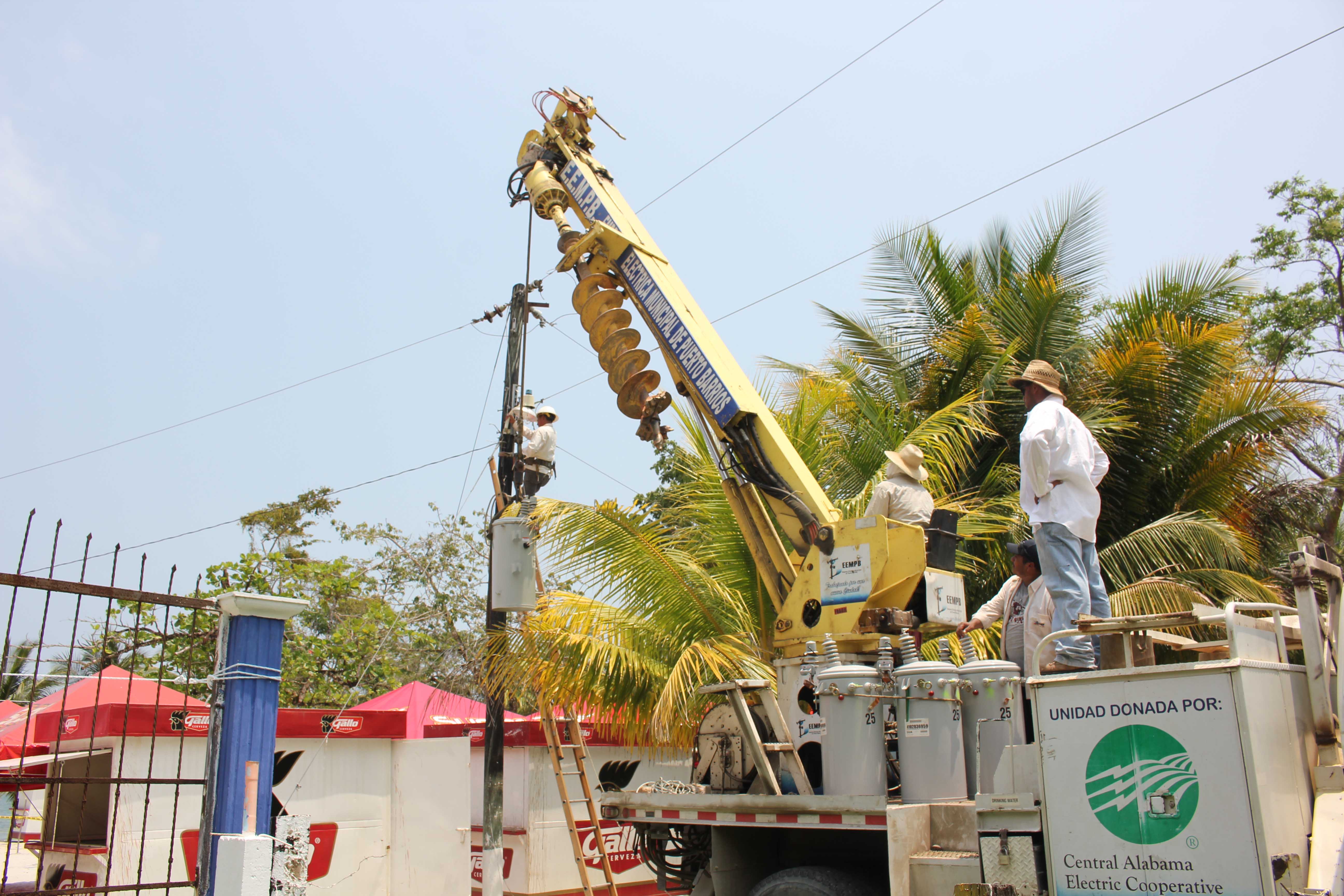 ADEMÁS TRABAJAMOS EN: Empresa Eléctrica Municipal instala un poste en Colonia Cafetalito, Puerto Barrios