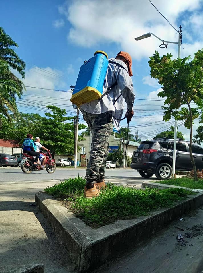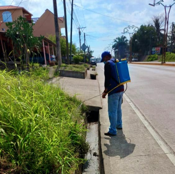 El personal encargado de la jardinización realizó la fumigación de las aceras y jardineras ubicadas en la 8a. avenida para despejarlas y mantener una visual agradable.