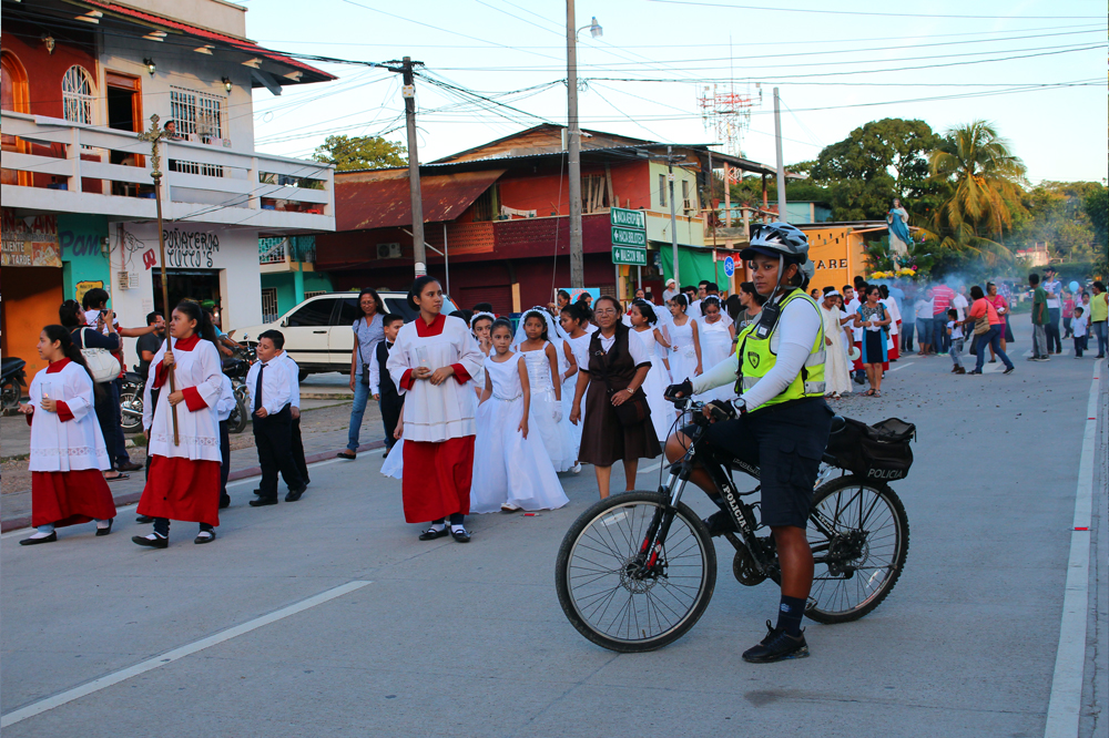 Los agentes de la Policía Municipal de Tránsito brindaron apoyo a feligreses de la Iglesia Católica, durante la procesión de la virgen Inmaculada Concepción, que recorrió las calles del centro de la ciudad, solicitando una coordinación vehicular durante su paso.