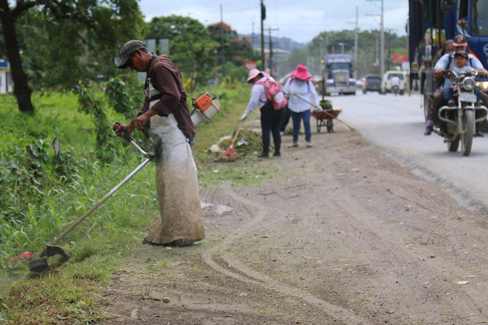 El trayecto de la carretera frente a la refinería fue chapeado por personal de mantenimiento de la municipalidad que se encargó de limpiarlo con dedicación, tomando en cuenta que presentaba un mal aspecto por lo crecido del monte y la basura que se había venido acumulando.