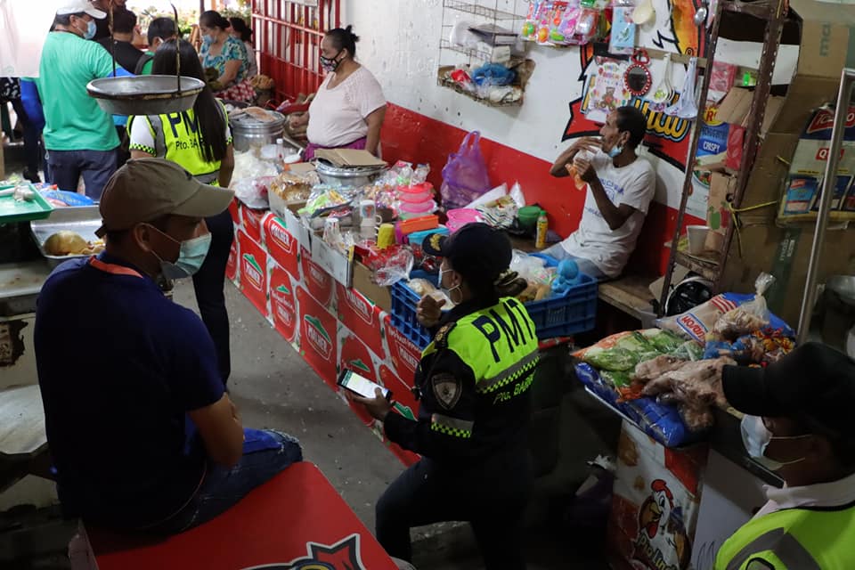 Se llevó a cabo por parte de la Policía Municipal de Orden y Policía Municipal de Tránsito, monitoreo en el Mercado #2 de la 14 calle, con el objetivo de verificar que inquilinos y usuarios cumplan las disposiciones del Ministerio de Salud, cómo el uso de la mascarilla y el distanciamiento social.