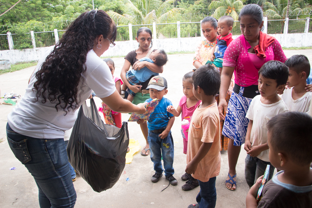 Los niños de la aldea Manacas fueron agasajados alegremente con motivo de conmemorarse el Día del Niño, gracias a la generosa aportación que hicieron entidades como Delis Pasteles, Club MTB, la oficina de Enlace Institucional de la Municipalidad de Puerto Barrios, el Cocode y los maestros de la escuela del lugar.