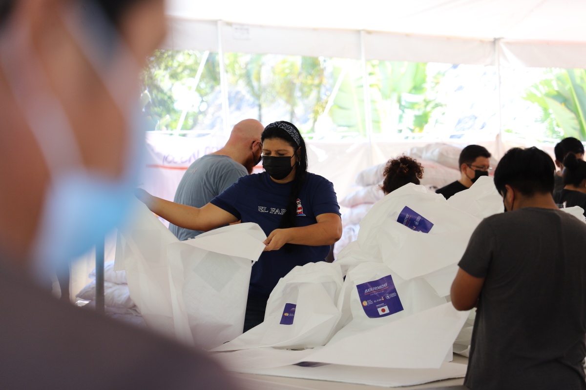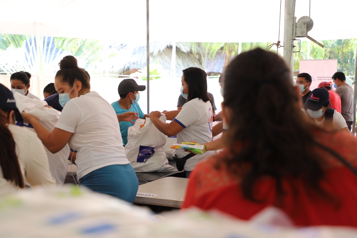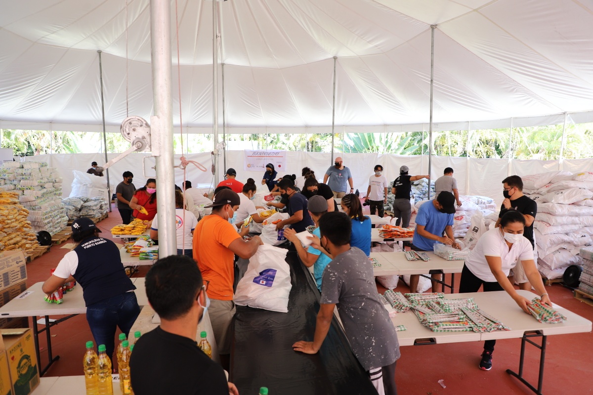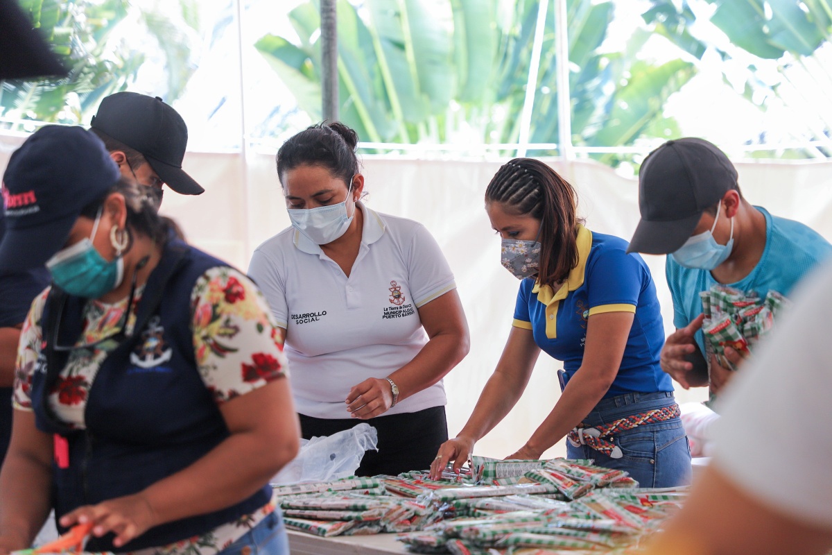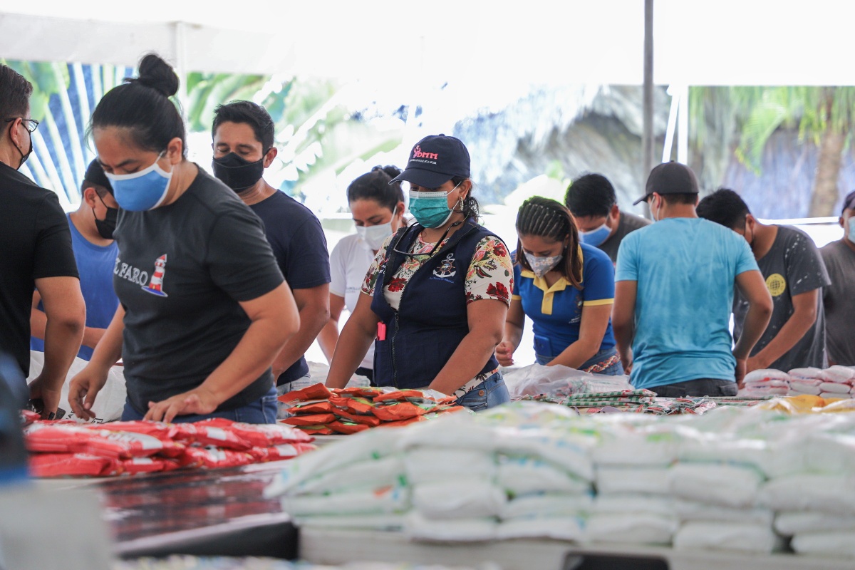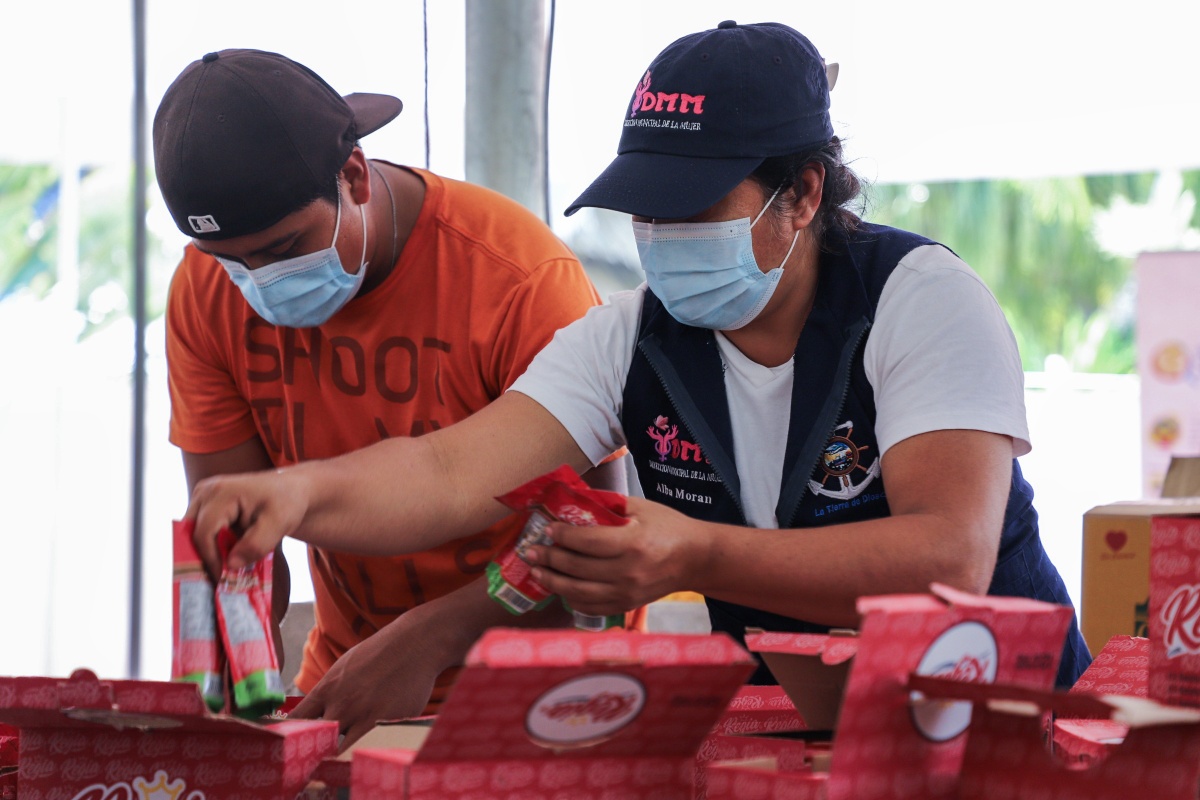 PERSONAL DE LA MUNICIPALIDAD PORTEÑA, APOYANDO EN EL EMBALAJE DE ALIMENTOS.