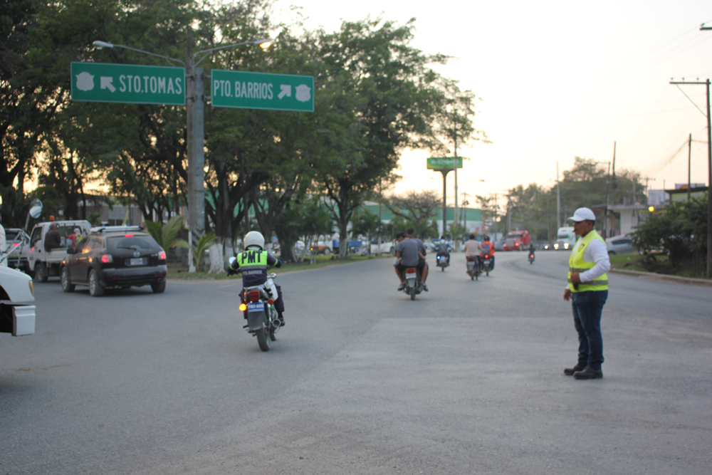 La Policía Municipal de Tránsito en aras de minimizar el tránsito vehicular en las horas de mayor afluencia, se constituye diariamente en la rotonda del cruce de Puerto Barrios y Santo Tomas, para dirigir y coordinar el flujo vehicular, además de ser este sector muy transitado por los barrioporteños que buscan llegar, unos a su trabajo y otros a centros educativos para realizar sus actividades cotidianas, es también una de las arterias donde más percances viales se producen, lo que merece hacer presencia constantemente, para servir mejor a la población.