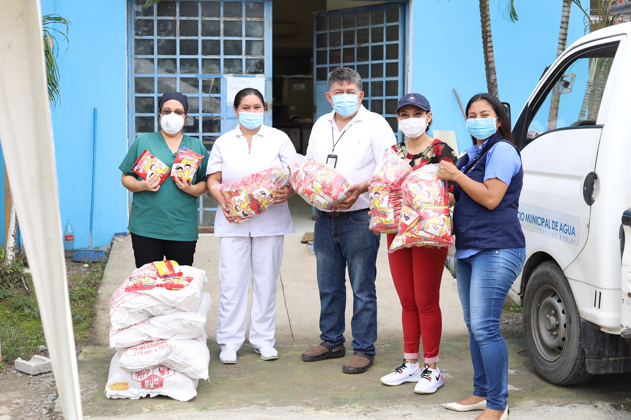 Continuando con el programa nutricional dedicado a la poblacion de escasos recursos económicos que desarrolla la comuna, empleados municipales se hicieron presentes en la Clínica del VIH del Hospital Nacional Japon Guatemala para hacer entrega de 255 libras de Incaparina que reforzarán la alimentación de los pacientes.